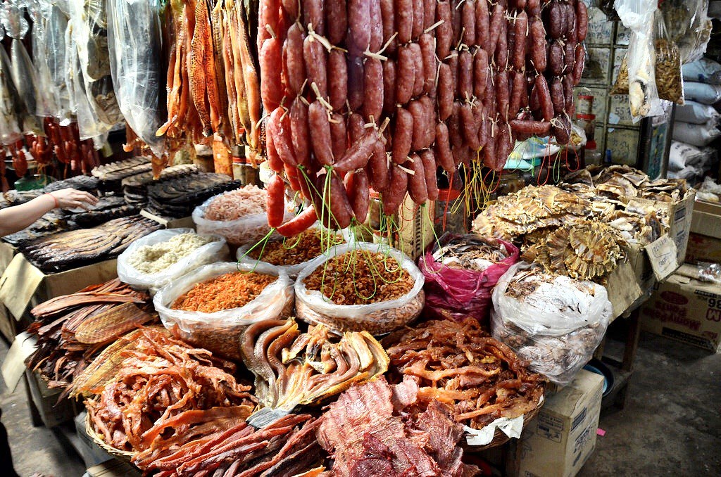 Chef San Piseth had just returned from a sabbatical, but was ready to be thrown back into the fire with me, his first pupil in several months. We hopped into the back of a tuk-tuk and before I knew it we were in the middle of Siem Reap’s busy central market. There are several markets around town, but the central market is where everyone goes, from housewives to restaurant chefs. Walking around I saw a little bit of everything, from fresh fruits and vegetables, to more adventurous bites like crickets and grubs. Even though it was early, the heat of the day was already making its presence known and many folks wanted to get everything done before the weather went from Very Hot to Surface of the Sun hot.