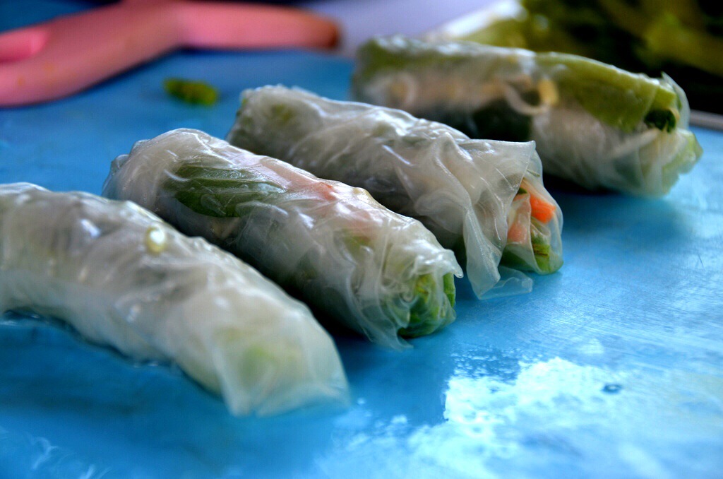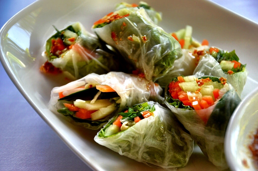 Vegetable Spring Rolls with Sweet and Sour Dressing