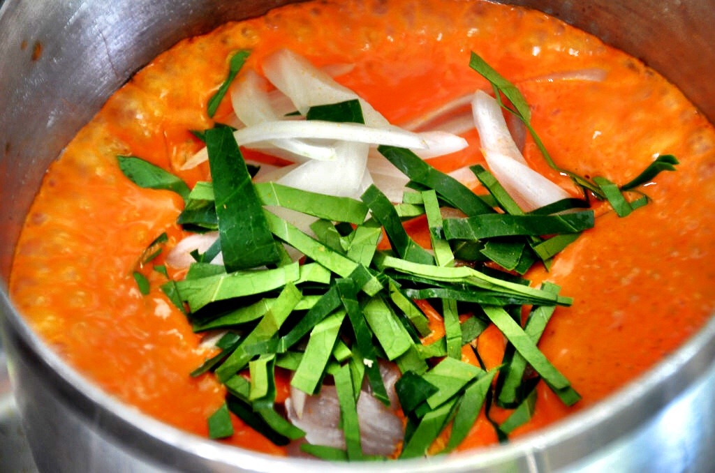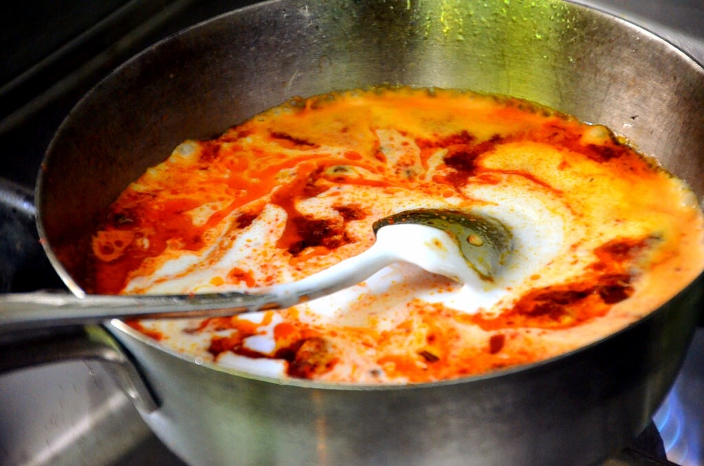 1. Sauté curry paste with vegetable oil and then add coconut milk. Strain afterwards.